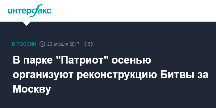 Москва. 23 апреля. INTERFAX.RU - Военно-историческая реконструкция Битвы за Москву пройдет в подмосковном парке "Патриот" в октябре, заявил один из организаторов мероприятия, ректор университета "Синергия" Юрий Рубин.