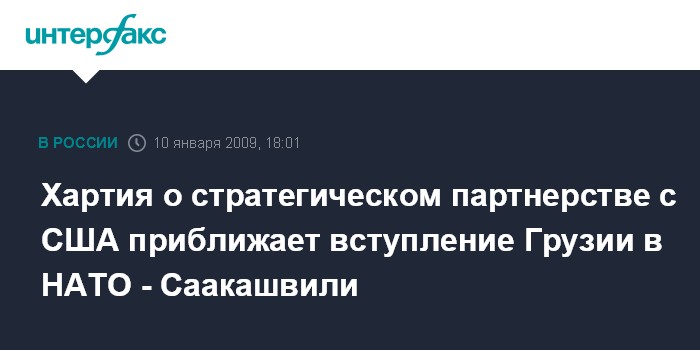 "С подписанием этого документа Грузия существенно приближается к Евроатлантическому пространству. Хочу напомнить, что вступлению стран Балтии в НАТО предшествовало именно заключение с США аналогичного документа", - отметил президент Грузии.