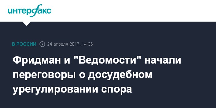 Фридман и "Ведомости" начали переговоры о досудебном урегулировании спора