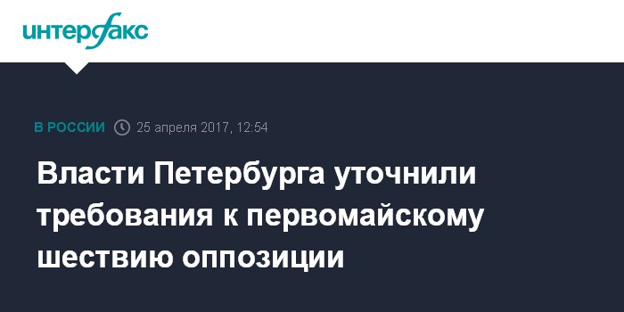Власти Петербурга уточнили требования к первомайскому шествию оппозиции