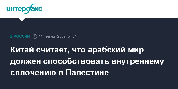 Китай считает, что арабский мир должен способствовать внутреннему сплочению в Палестине