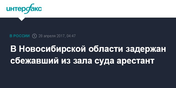 Москва. 28 апреля. INTERFAX.RU - Полицейские и сотрудники Управления ФСБ по Новосибирской области задержали обвиняемого, сбежавшего во вторник из зала Коченевского районного суда, сообщает пресс-служба Главного управления (ГУ) МВД России по региону.