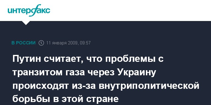 Москва. 11 января. INTERFAX.RU - Проблемы с транспортировкой газа по Украине происходят из-за внутриполитической борьбы, которая превращается в борьбу кланов в этой стране, заявил премьер-министр РФ Владимир Путин.