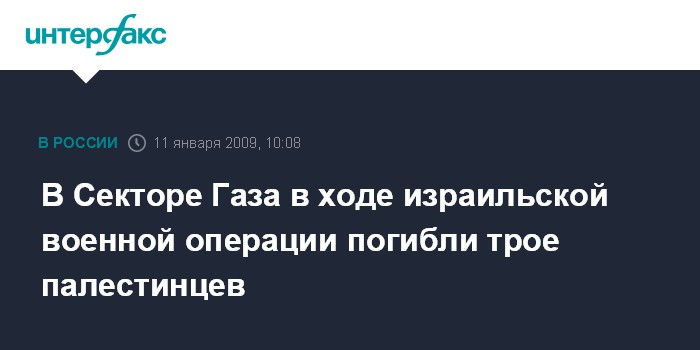 Москва. 11 января. INTERFAX.RU - Минимум трое палестинцев погибли в воскресенье во время израильской военной операции в секторе Газа, передает британская телерадиокорпорация Би-Би-Си.