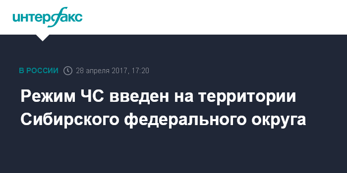 Москва. 28 апреля. INTERFAX.RU - Режим чрезвычайной ситуации введён на всей территории Сибирского федерального округа из-за возникших пожаров, сказал глава МЧС Владимир Пучков.