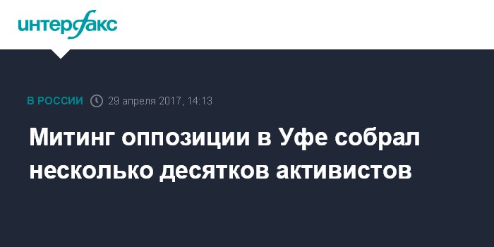Москва. 29 апреля. INTERFAX.RU - Согласованный оппозиционный митинг состоялся в субботу в Уфе, сообщил корреспондент "Интерфакса".