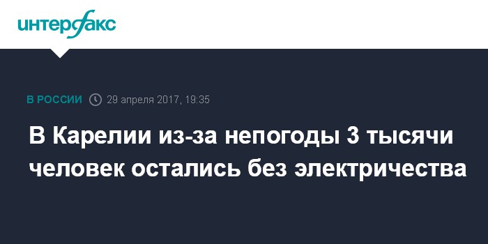 Москва. 29 апреля. INTERFAX.RU - Около 3 тысяч человек остаются без электричества в Карелии, сообщает пресс-служба ГУ МЧС по республике.