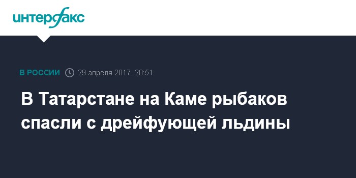 Москва. 29 апреля. INTERFAX.RU - Сотрудники МЧС по Татарстану спасли рыбаков, которых унесло на льдине на фарватер Камы.