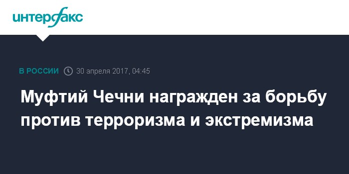 Муфтий Чечни награжден за борьбу против терроризма и экстремизма