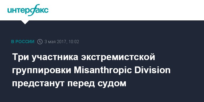 Три участника экстремистской группировки Misanthropic Division предстанут перед судом