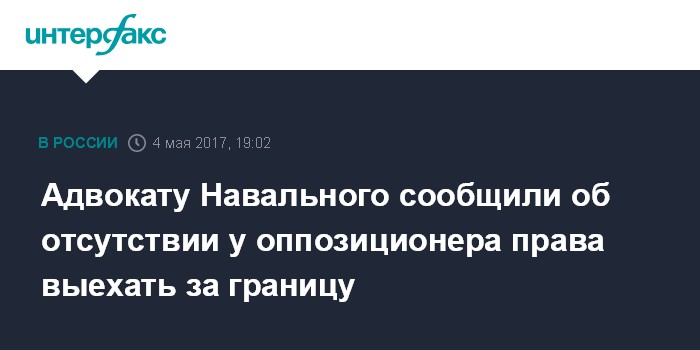 Москва. 4 мая. INTERFAX.RU - Федеральная служба исполнения наказаний считает, что оппозиционный политик Алексей Навальный, который в четверг получил загранпаспорт, не может покидать пределы России, сообщил "Интерфаксу" его адвокат Вадим Кобзев.