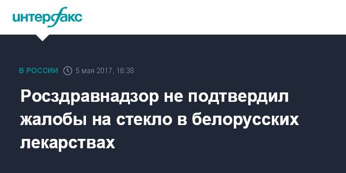 Москва. 5 мая. INTERFAX.RU - Росздравнадзор не получал сообщений пациентов об обнаружении в ампулах препаратов белорусского производителя осколков стекла и механических включений, сообщает пресс-служба ведомства.