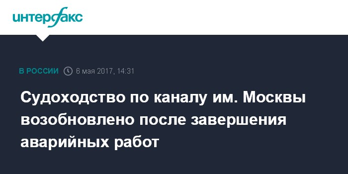 Судоходство по каналу им. Москвы возобновлено после завершения аварийных работ