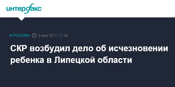 "Следственными органами СУ СК России по Липецкой области по факту безвестного исчезновения малолетнего ребенка в селе Солдатское Тербунского района возбуждено уголовное дело по признакам преступления, предусмотренного п. "в" ч. 2 ст. 105 УК РФ (убийство малолетнего)", - говорится в сообщении ведомства, поступившем в "Интерфакс".