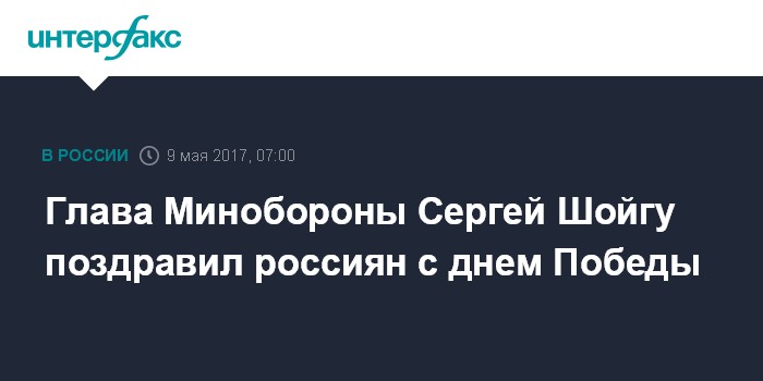 Москва. 9 мая. INTERFAX.RU - Министр обороны России Сергей Шойгу поздравил военнослужащих и ветеранов с Днем Победы.