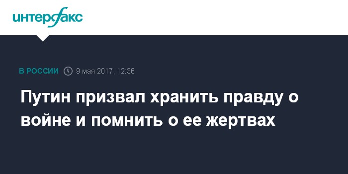 "Вот о чем мы должны всегда помнить, когда говорим о правде в отношении второй мировой и Великой Отечественной войны, о жертвах, которые принес наш народ на алтарь победы, - подчеркнул президент. - Вот о чем мы никогда не должны забывать, вот главное".