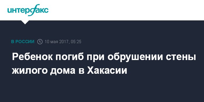 Москва. 10 мая. INTERFAX.RU - Под завалом дома в Аскизе, Хакасия, погиб четырехлетний ребенок, сообщило правительство республики в среду. При обрушении также есть пострадавшие.