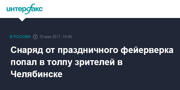 Москва. 10 мая. INTERFAX.RU - Снаряд от праздничного фейерверка попал в толпу зрителей в Челябинске, полиция проводит проверку.