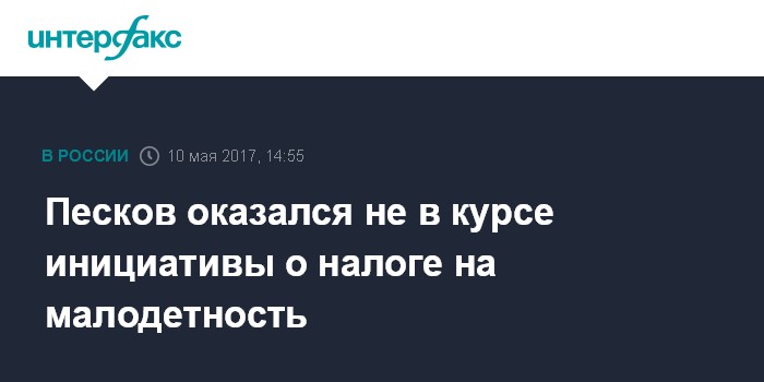 Песков оказался не в курсе инициативы о налоге на малодетность