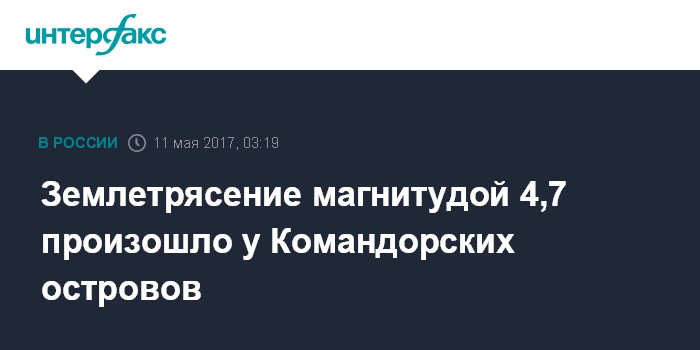 Москва. 11 мая. INTERFAX.RU - Сейсмологи зарегистрировали землетрясение магнитудой 4,7, произошедшее в акватории Берингова моря неподалеку от Командорских островов (Алеутский район Камчатского края), сообщает в четверг Главное управление МЧС России по Камчатскому краю.