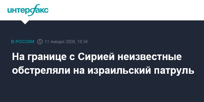 Москва. 11 января. INTERFAX.RU - Служащие армии обороны Израиля в понедельник подверглись обстрелу на границе с Сирией, сообщает интернет-сайт израильской газеты Jerusalem Post. По данным издания, обстрелу подвергся израильский патруль. Предположительно патруль был обстрелян неизвестными, проникшими на израильскую территорию из Сирии.