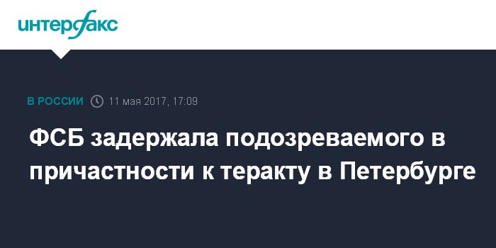 Москва. 11 мая. INTERFAX.RU - ФСБ задержала в Москве гражданина одной из среднеазиатских республик по подозрению в причастности к теракту в метро Петербурга.