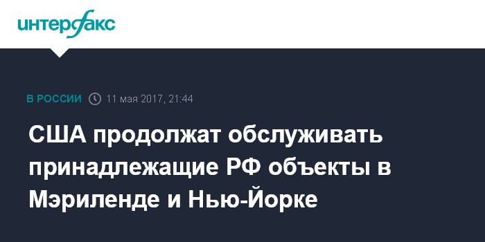 США продолжат обслуживать принадлежащие РФ объекты в Мэриленде и Нью-Йорке