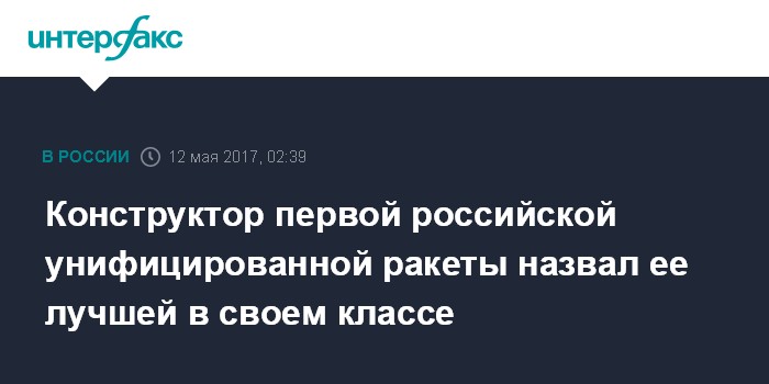 Конструктор первой российской унифицированной ракеты назвал ее лучшей в своем классе