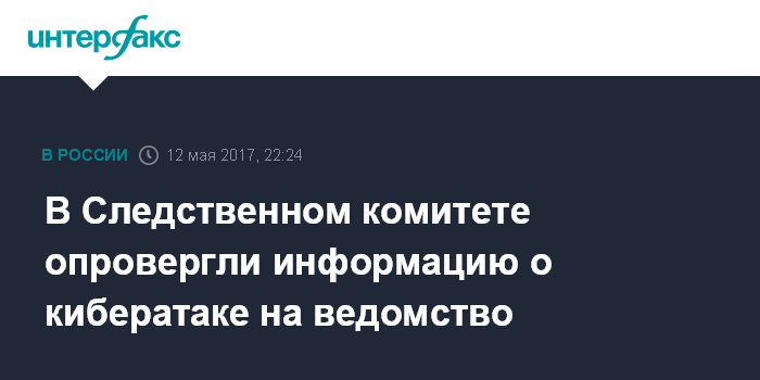 Москва. 12 мая. INTERFAX.RU - Сообщения в ряде СМИ о том, что внутренние сети Следственного комитета России подверглись хакерской атаке, не соответствуют действительности, заявили в ведомстве. Как рассказала "Интерфаксу" официальный представитель СК Светлана Петренко, все ресурсы ведомства работают в штатном режиме.