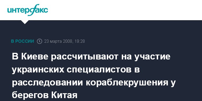 Как сообщили агентству "Интерфакс-Украина" в пресс-службе Минтранссвязи, ведомство намерено инициировать рассмотрение вопроса об участии украинских специалистов в расследовании причин и обстоятельств кораблекрушения в Южно-Китайском море. В настоящее время расследование проводят морские власти КНР согласно действующим международным правилам.