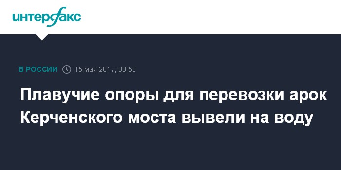 Москва. 15 мая. INTERFAX.RU - "Севморзавод" (Севастополь) построил четыре понтона для монтажа арок Керченского моста и спустил конструкции на воду, сообщил в понедельник информационный центр проекта "Крымский мост".