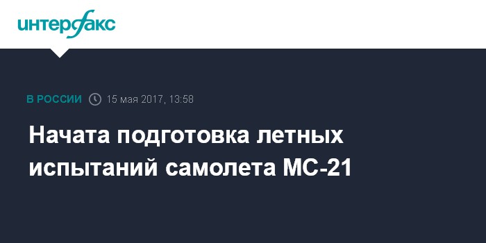 Москва. 15 мая. INTERFAX.RU - Самолет МС-21-300-0001 готовится к началу летных испытаний в летно-испытательном подразделении Иркутского авиационного завода, сообщает пресс-служба корпорации "Иркут".