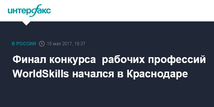 Москва. 15 мая. INTERFAX.RU - Финал Пятого национального чемпионата рабочих профессий WorldSkills Russia ("Молодые профессионалы") открылся в Краснодаре, предает корреспондент "Интерфакса".