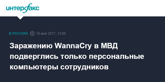 Заражению WannaCry в МВД подверглись только персональные компьютеры сотрудников
