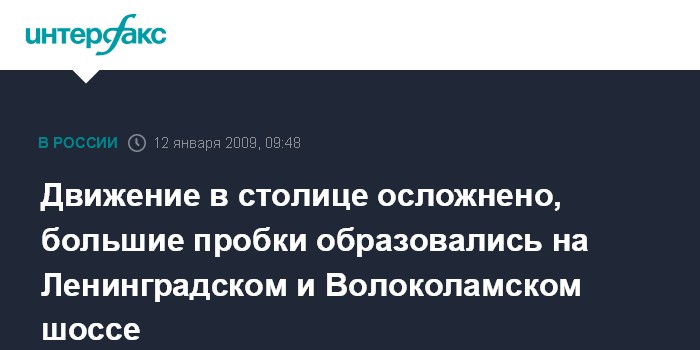 Москва. 12 января. INTERFAX.RU - Первый рабочий понедельник нового года ознаменовался в Москве глухими пробками.
