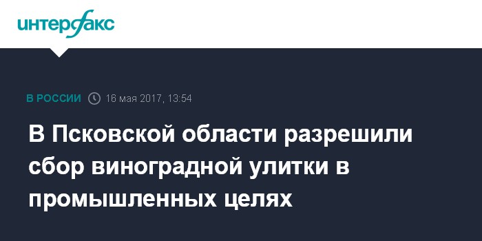 Москва. 16 мая. INTERFAX.RU - В Псковской области разрешили отлов виноградной улитки в промышленных целях.