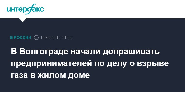 Москва. 16 мая. INTERFAX.RU - Следователи в Волгограде приступили к допросу предпринимателей, владельцев магазинов и заведений, находящихся вблизи жилого дома, где произошел взрыв бытового газа, сообщила "Интерфаксу" официальный представитель регионального управления СКР Наталия Куницкая.