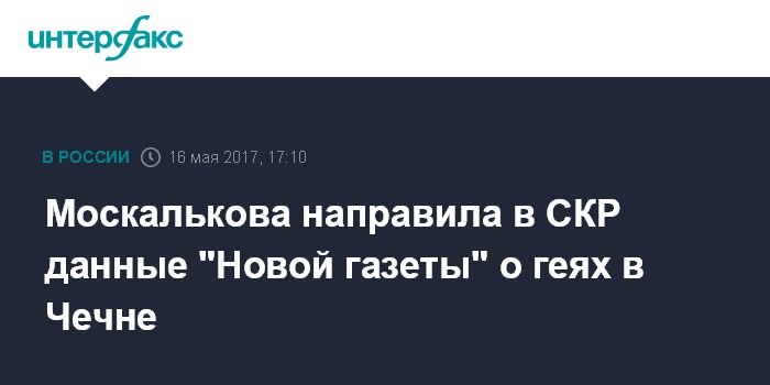 Москва. 16 мая. INTERFAX.RU - Уполномоченный по правам человека в РФ Татьяна Москалькова заявила, что направила в Следственный комитет России информацию "Новой газеты" с личными данными представителей ЛГБТ-сообщества, якобы подвергнутых преследованию в Чечне.