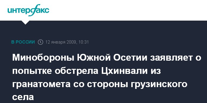 Москва. 12 января. INTERFAX.RU - Со стороны грузинского села Никои, приграничного с Южной Осетией (юго-западная часть Цхинвали), 11 января был произведен выстрел в район жилого массива Цхинвали, сообщил "Интерфаксу" в понедельник заместитель министра обороны Южной Осетии Ибрагим Гассеев.