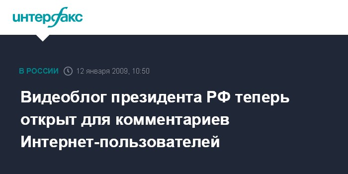 Москва. 12 января. INTERFAX.RU - Интернет-пользователи теперь могут оставлять свои комментарии в видеоблоге президента РФ на официальном сайте Кремля.