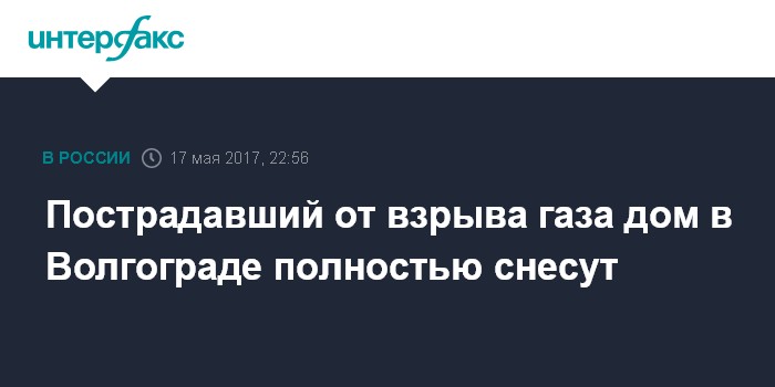 Москва. 17 мая. INTERFAX.RU - Принято решение о сносе дома, пострадавшего в результате взрыва газа в Волгограде, сообщил журналистам в среду губернатор Волгоградской области Андрей Бочаров.