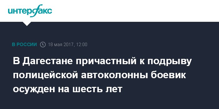 Москва. 18 мая. INTERFAX.RU - Суд в Дагестане вынес приговор местному жителю, участнику бандформирования Абдулгадыру Сулейманову, сообщил агентству "Интерфакс" старший помощник руководителя следственного управления СКР по республике Расул Темирбеков.