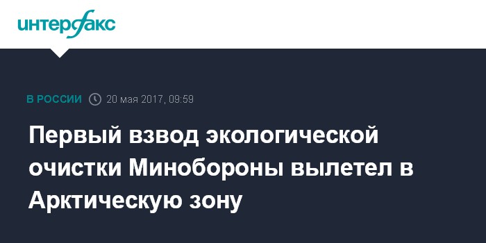 Отправка взводов экологической очистки Минобороны завершится в начале июня 2017 года. Взводы Восточного военного округа на остров Врангеля и Северного флота на острова Котельный и Кильдин вылетят позже, в начале июня, в связи с тем, что на островах, где им предстоит выполнять работы, еще лежит снег", - отметил замглавы военного ведомства.