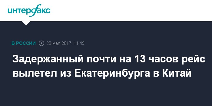 Задержанный почти на 13 часов рейс вылетел из Екатеринбурга в Китай