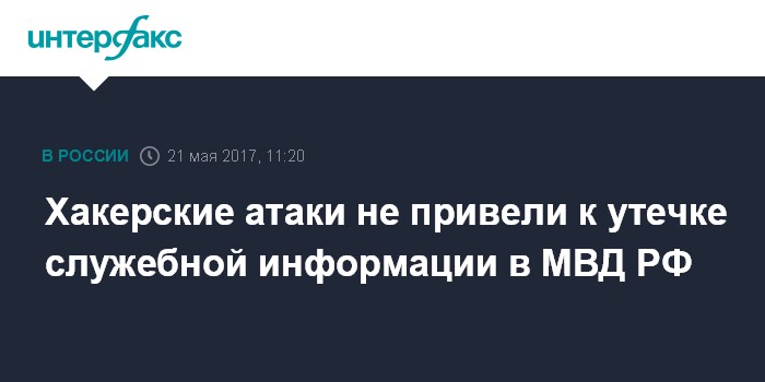 Хакерские атаки не привели к утечке служебной информации в МВД РФ