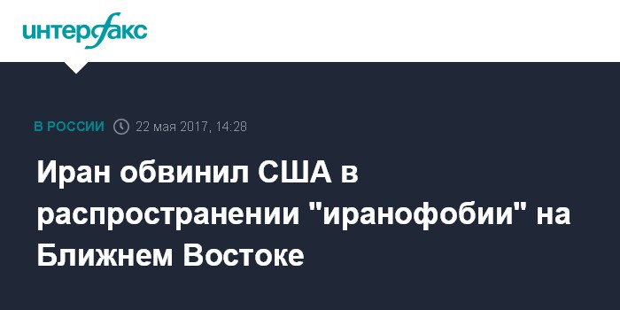 Москва. 22 мая. INTERFAX.RU - Иранские власти обвинили Вашингтон в распространении "иранофобии", призванной увеличить продажи оружия на Ближнем Востоке, а также в продаже оружия "опасным террористам", сообщил телеканал PressTV.