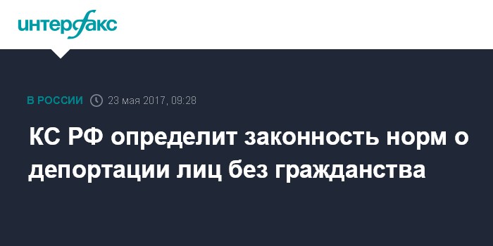 Москва. 23 мая. INTERFAX.RU - Конституционный суд РФ на заседании во вторник провозгласит постановление по делу о правилах выдворения апатридов (лиц без гражданства - ИФ) за правонарушения.