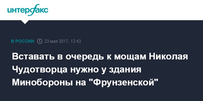 Вставать в очередь к мощам Николая Чудотворца нужно у здания Минобороны на "Фрунзенской"