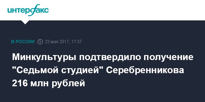 Москва. 23 мая. INTERFAX.RU - В Министерстве культуры РФ подтвердили, что в течение трех лет выделили более 216 млн рублей некоммерческой организации "Седьмая студия", однако с 2014 года деньги на эти цели не направлялись.