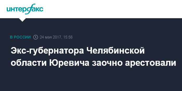 Москва. 24 мая. INTERFAX.RU - Свердловский областной суд в среду рассмотрел апелляцию прокуратуры на решение Ленинского райсуда Екатеринбурга и заочно арестовал бывшего губернатора Челябинской области Михаила Юревича.